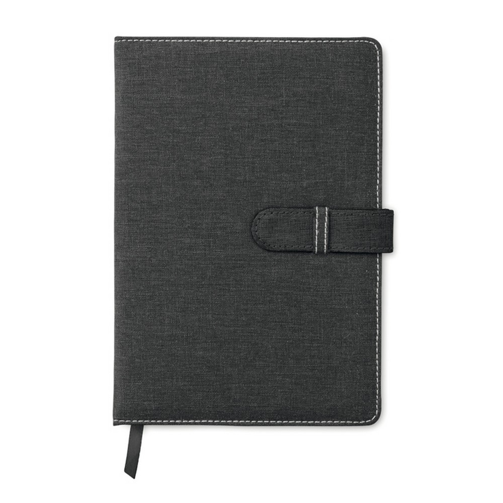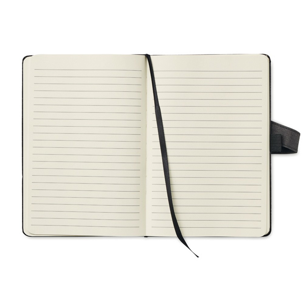 Agenda A5 are 80 de pagini liniate, coperta din panza de bumbac, cu curea de inchidere.