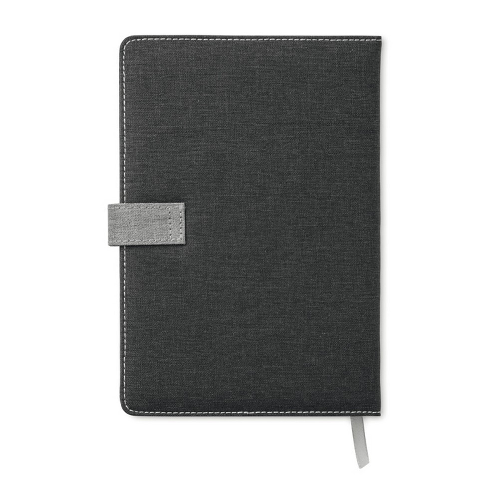 Agenda A5 are 80 de pagini liniate, coperta din panza de bumbac, cu curea de inchidere.