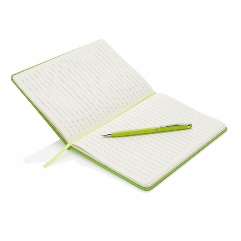 Agenda A5 coperta tare PU standard si pix metalic stylus, Everestus, SD, hartie, otel inoxidabil, verde