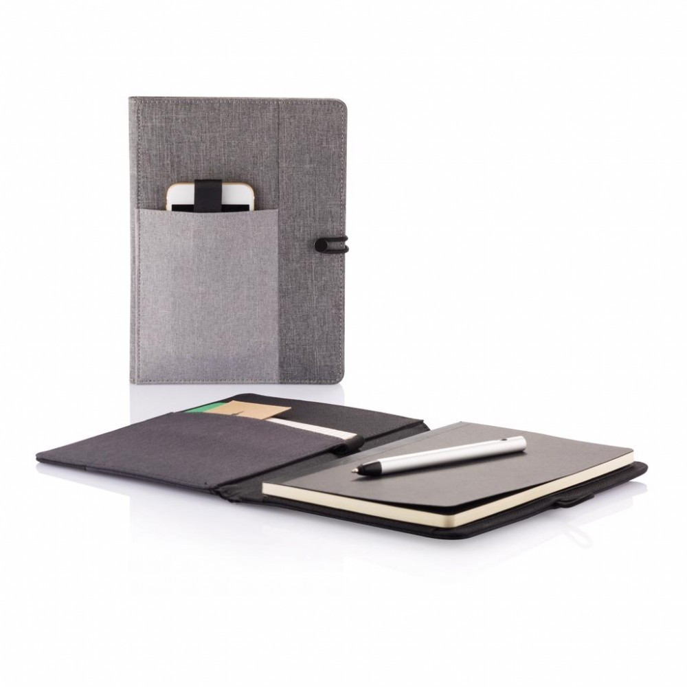 Agenda A5 cu buzunar pentru telefon si pix, 128 pagini, XD, KO, poliester, negru