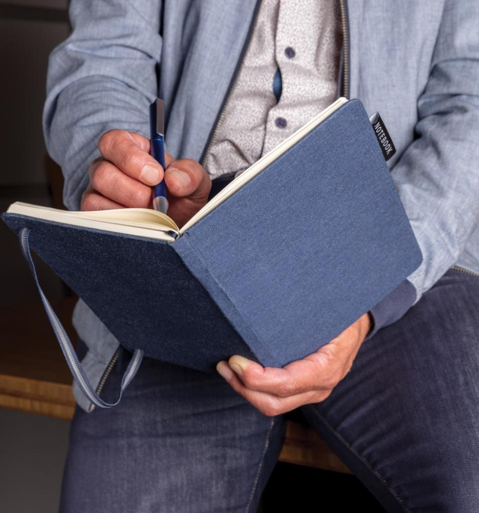 Agenda A5 cu coperta denim, 160 pagini, Everestus, DM, bumbac, hartie, albastru navy