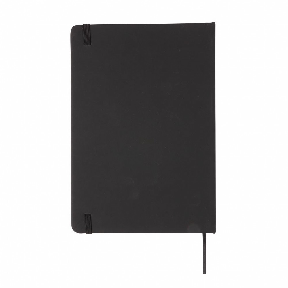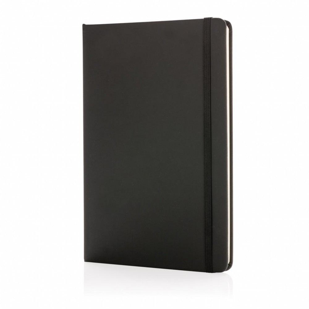 Agenda clasica PU cu hartie rigida A5, cu inchidere elastica si panglica neagra.