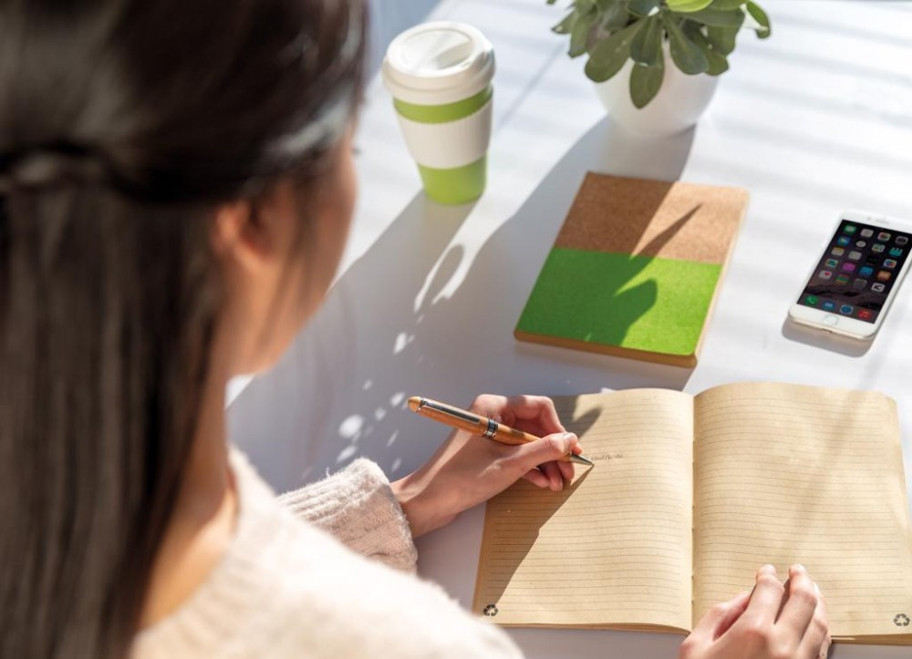 Agenda prietenoasa cu mediul realizata din pluta si hartie reciclata.