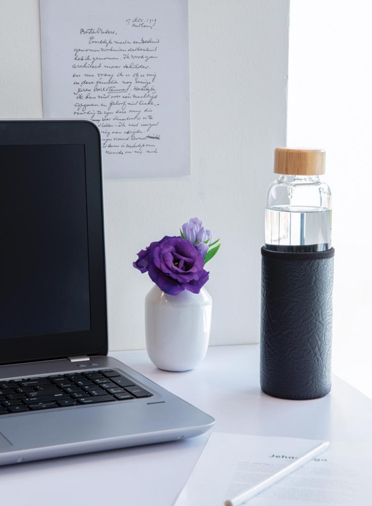 Sticla de apa cu capac de bambus si manson antiderapant.