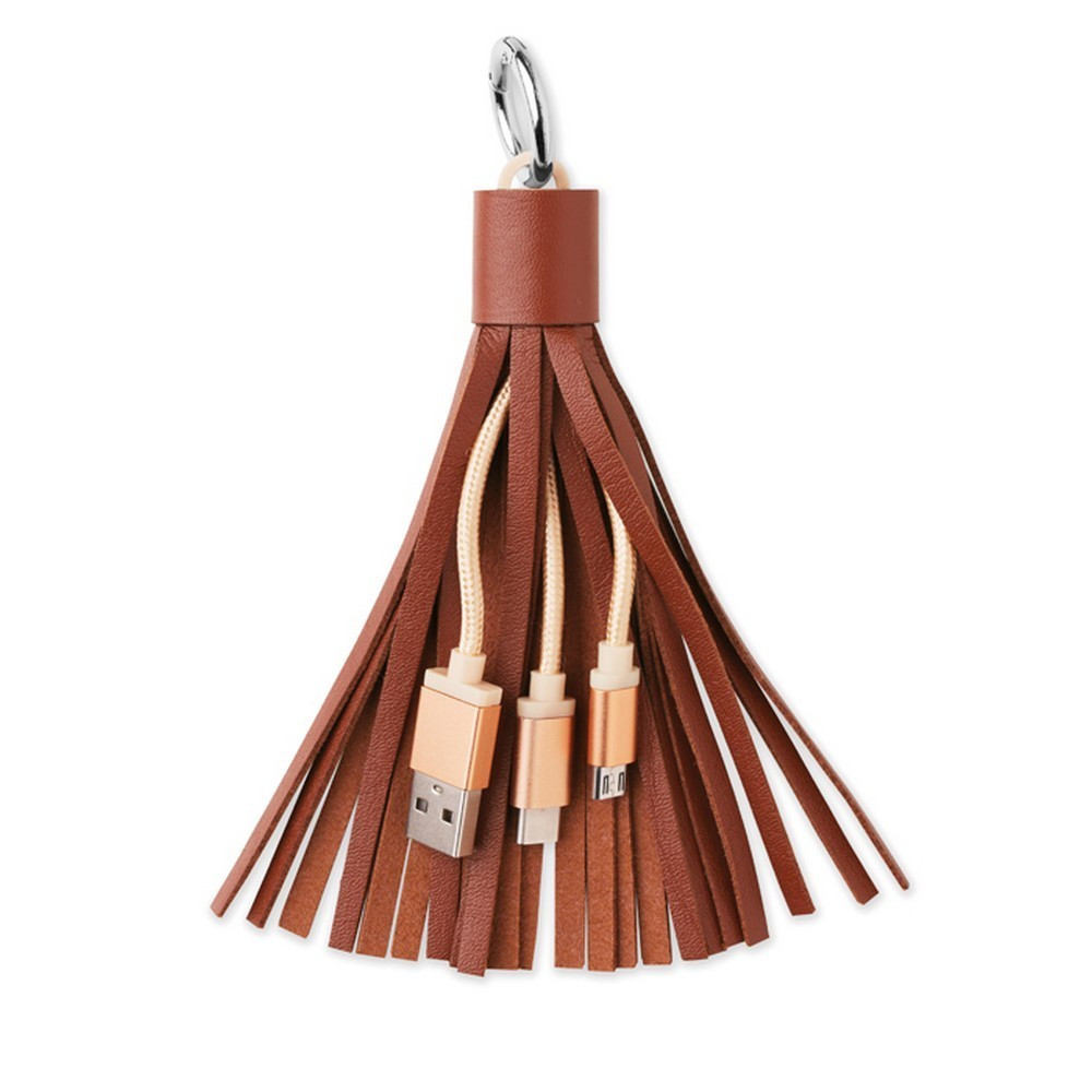 Breloc cablu de date cu micro usb, Everestus, KR0103, piele ecologica, metal, maro