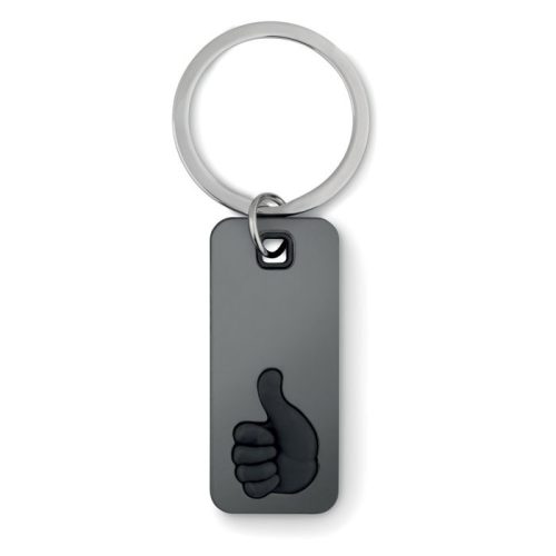 Breloc dreptunghiular din otel inoxidabil cu insert din plastic in forma de deget.