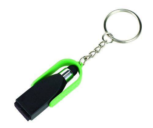 Breloc smart clean cu varf touchscreen negru-verde Breloc smart clean cu varf touchscreen pentru smartphone-uri si tablete, pe o parte, si pe cealalta parte stergator pentru ecran, inclusiv inel pentru cheie.