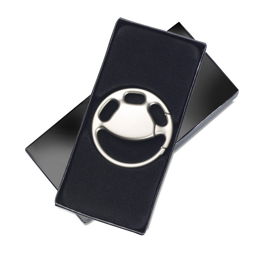 Breloc metalic elegant in forma de volan in cutie neagra.