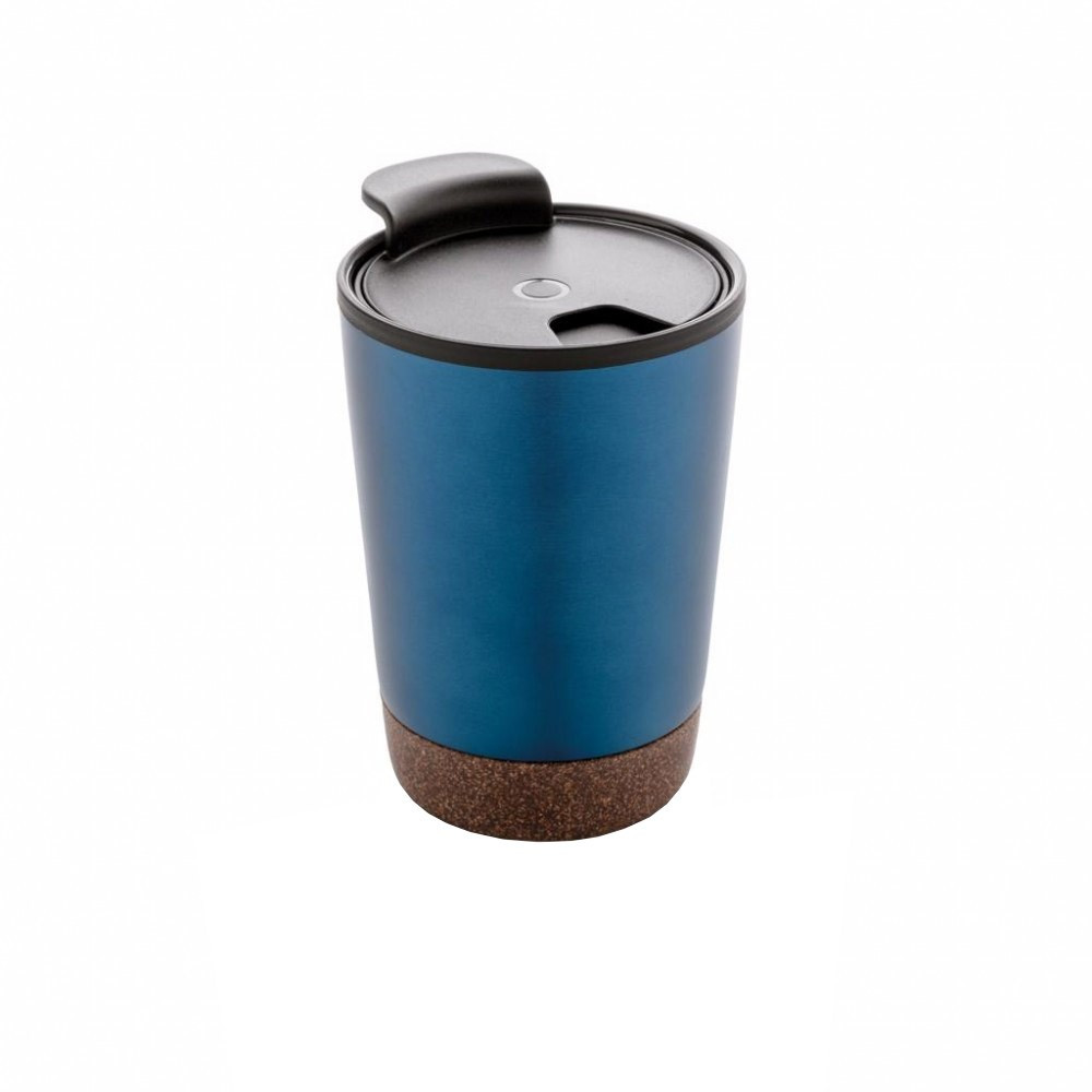 Cana cafea cu baza din pluta 300 ml, perete dublu, Everestus, CK, otel inoxidabil, pp, albastru