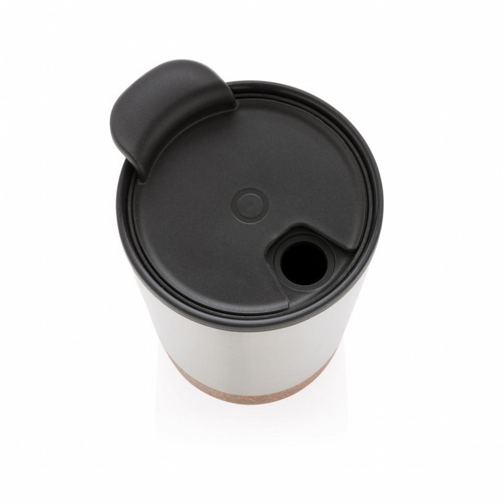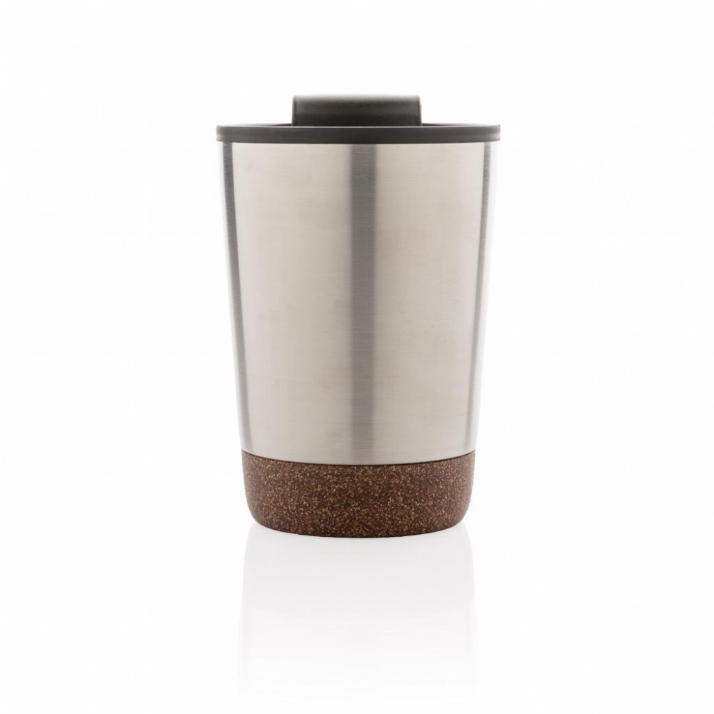 Cana cafea cu baza din pluta 300 ml, perete dublu, Everestus, CK, otel inoxidabil, pp, argintiu
