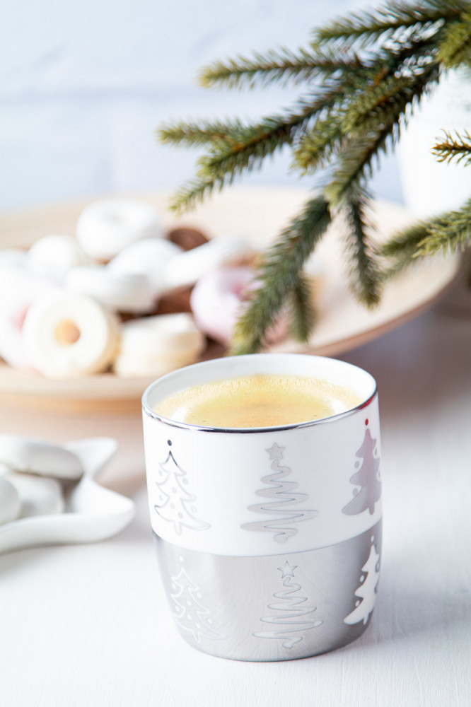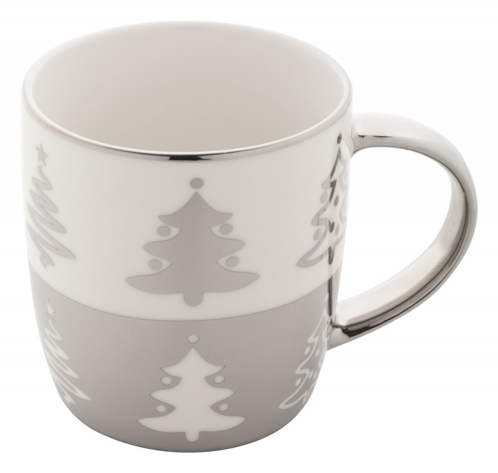 Cana cu design de Craciun, 350 ml, ø85x91 mm, Everestus, 20SEP0167, Portelan, Argintiu
