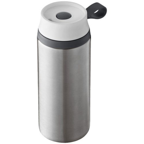 Cana de calatorie realizata cu perete dublu izolat, otel inoxidabil la exterior si plastic in interior.