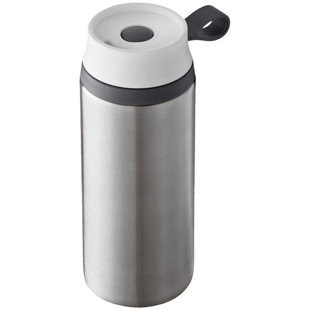 Cana de calatorie 350 ml, perete dublu, Everestus, FW, otel inoxidabil exterior, plastic interior, argintiu