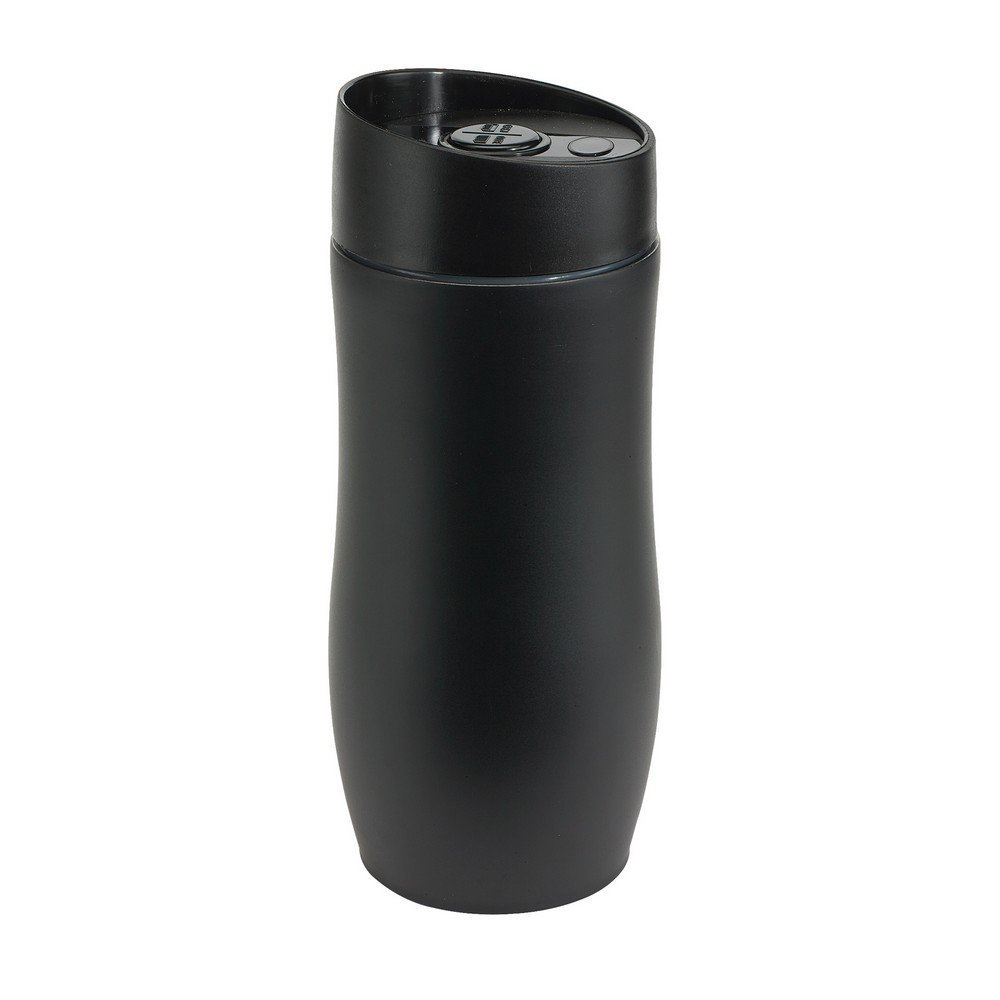 Cana de calatorie 380 ml cu perete dublu, negru, Everestus, CC06CO, otel inoxidabil, plastic