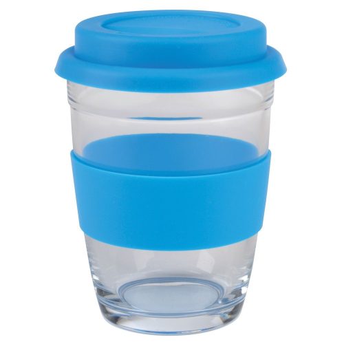 Cana de voiaj, 350 ml, ⌀8,5 x 11 cm, Everestus, 20SEP0945, Sticla, Silicon, Albastru, Transparent