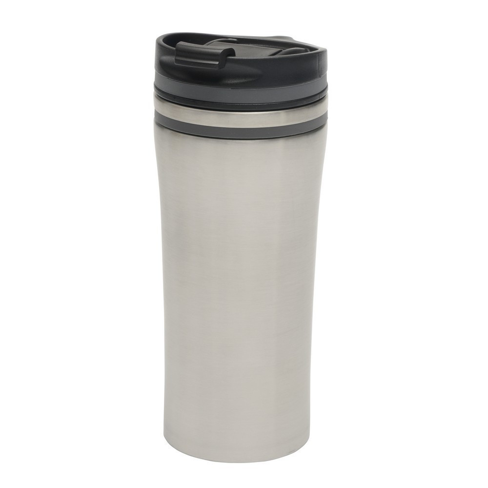 Cana de voiaj 400 ml, insertii colorate, perete dublu, Everestus, LA02, otel inoxidabil, argintiu, gri