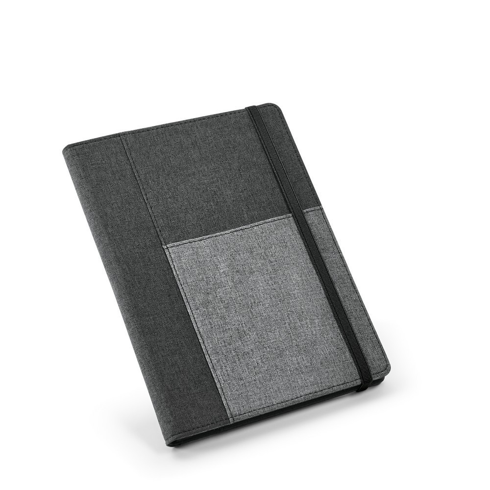 Agenda din poliester cu 96 pagini veline, suport de pix si buzunar interior.