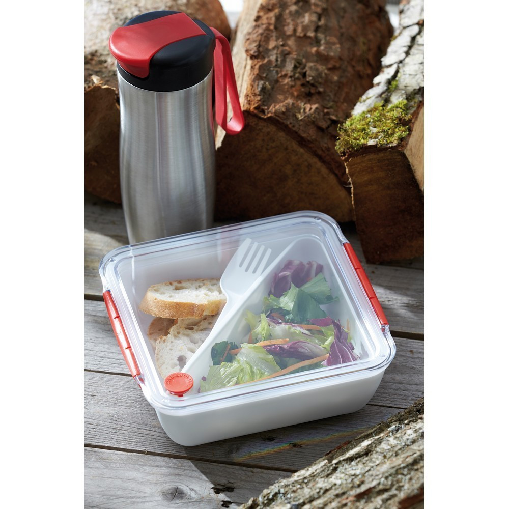 Set caserola pranz si furculita, Everestus, CAE14, plastic, silicon, alb, rosu