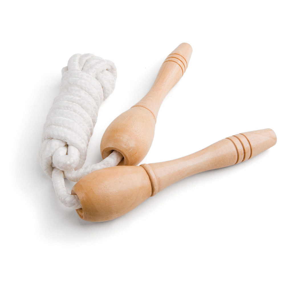Coarda de sarit cu manere din lemn ideala pentru joaca in aer liber.