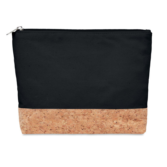 Geanta cosmetice cu baza din pluta, Everestus, 20IAN435, Bumbac, Negru