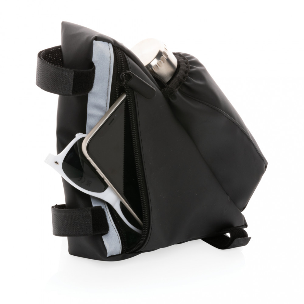 Aceasta geanta din PU pentru cadru de bicicleta de inalta vizibilitate cu suport pentru sticle este accesoriul ideal pentru a il lua cu tine intr-o plimbare relaxata cu bicicleta.