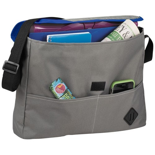 Geanta de umar cu bretea ajustabila, buzunar frontal deschis, Everestus, OT01, poliester 600D, gri, albastru