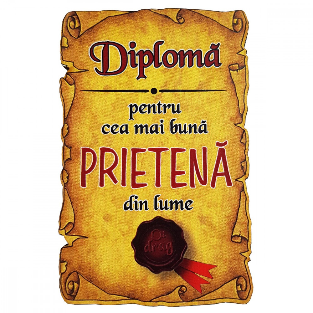 Magnet Diploma pentru Cea mai buna PRIETENA din lume, lemn