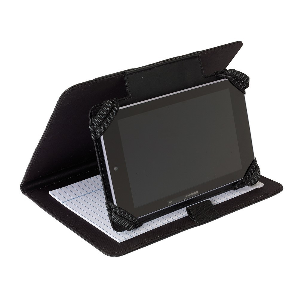 Mapa de conferinta cu suport pentru tableta, pliabila, cu bretele elastice pentru sustinere.