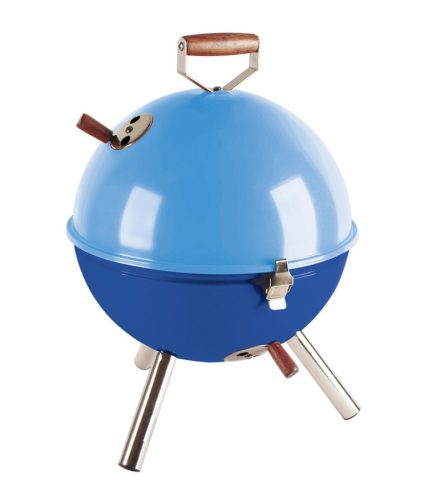 Mini Barbeque din otel lacuit, dotat cu maner din lemn pentru un transport usor si hota prevazuta cu clame de inchidere si sistem de ventilatie.
