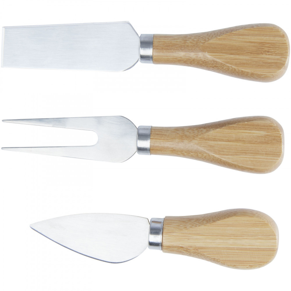 Setul este format dintr-o tabla din bambus (22,8 x 18 x 1 cm), un cutit standard pentru branza (12,5 x 2,5 cm), un cutit dreptunghiular pentru branza (12,5 x 2,7 cm) si o furculita pentru branza (13,5 x 2,4 cm).