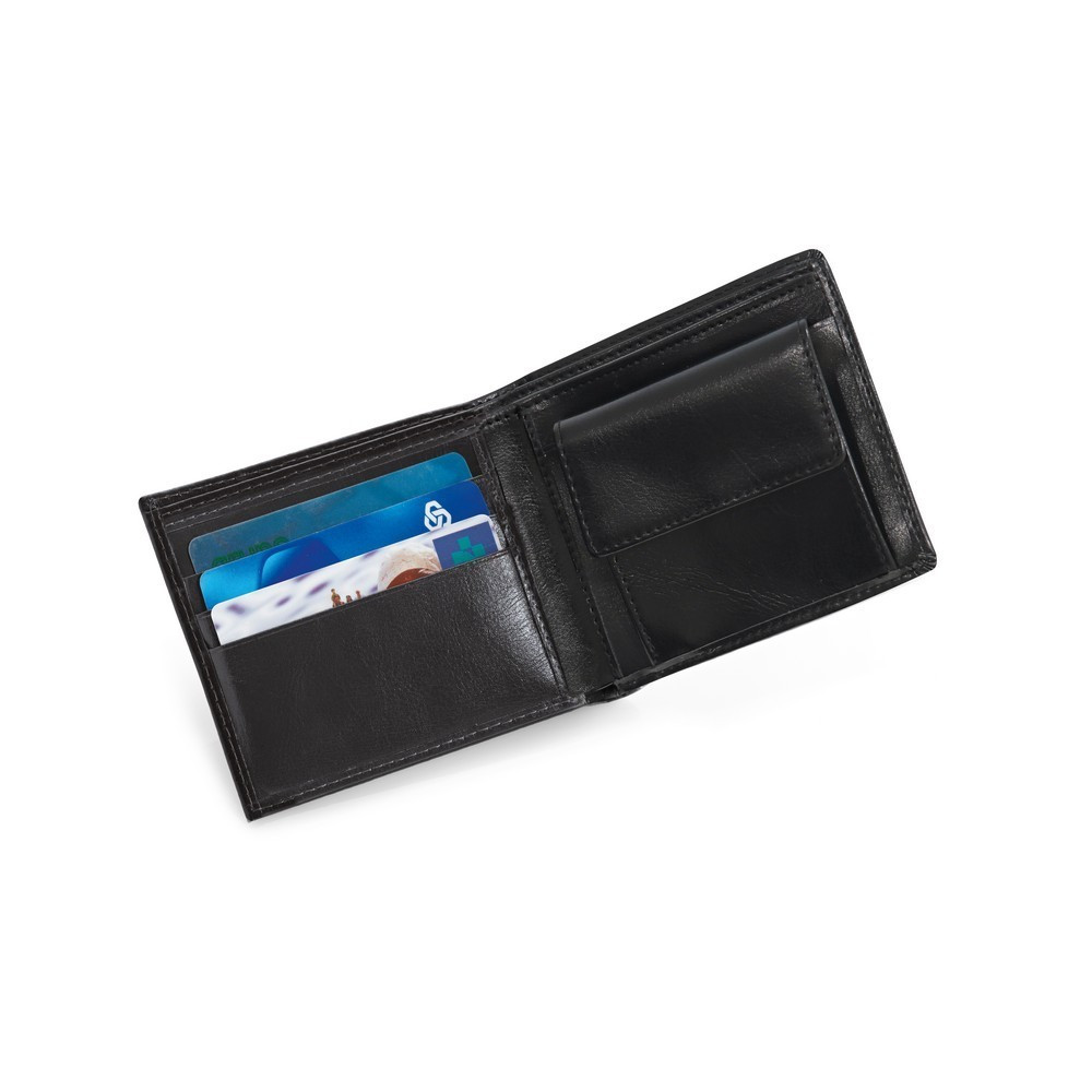 Portofel cu buzunar de monede si 3 locuri de carduri, Everestus, NB, piele, negru, 114x95x15 mm