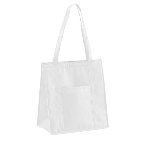 Geanta termoizolanta din material netusut(80 g/m²) cu inchidere velcro si buzunar frontal.