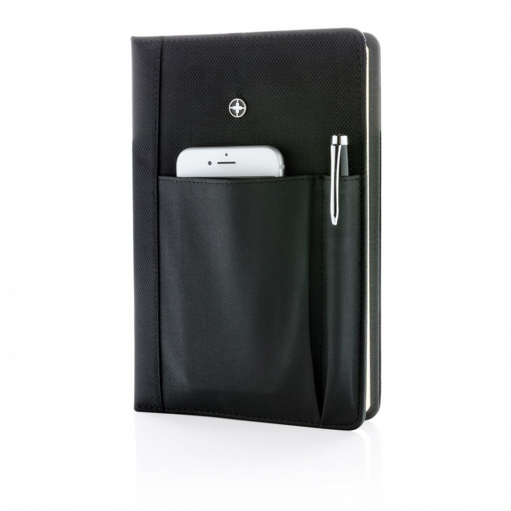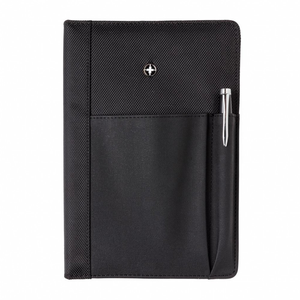 Set agenda si pix, coperta poliester 1680D si 600D, 192 pagini detasabile, Swiss Peak, RE, pu, negru