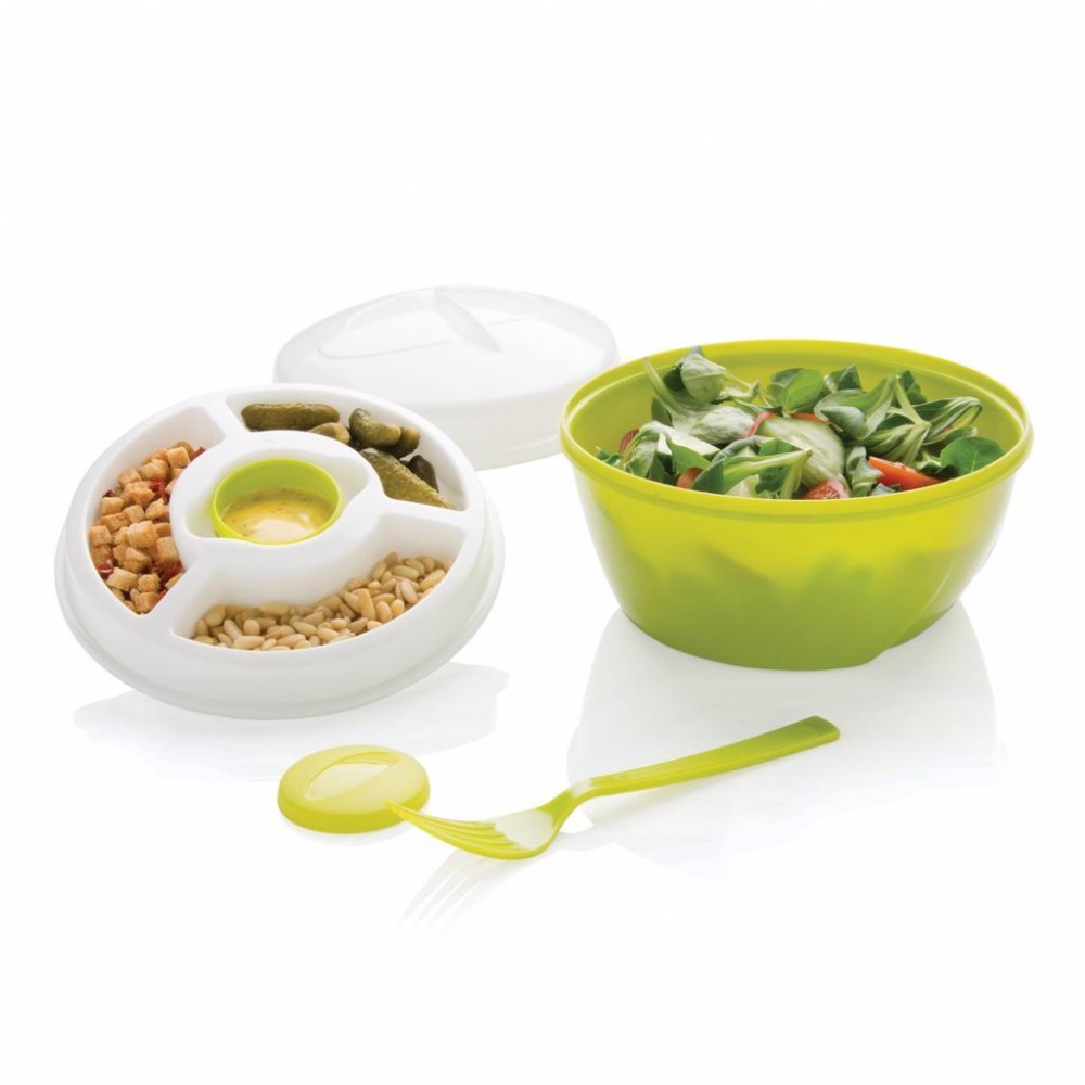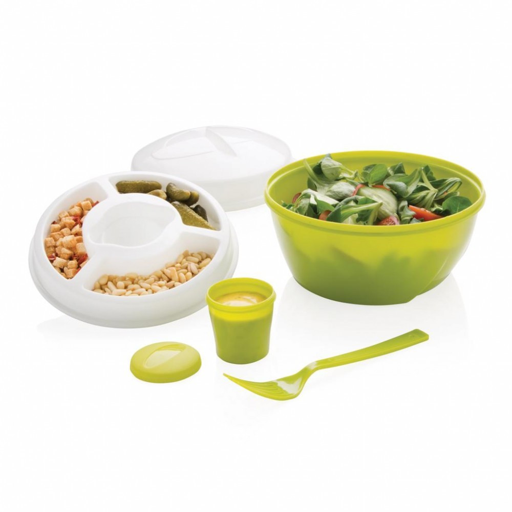 Bol de salata cu 4 compartimente detasabile pentru sosuri.