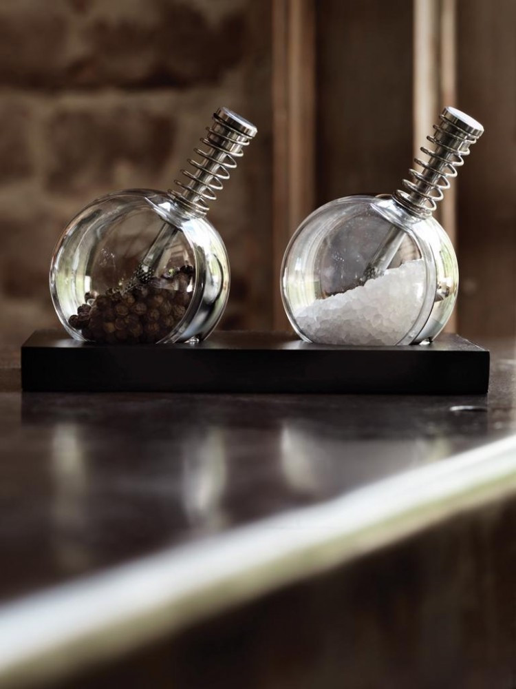 Deoarece recipientele sunt transparente, este usor sa observi nivelul de sare si de boabe de piper.