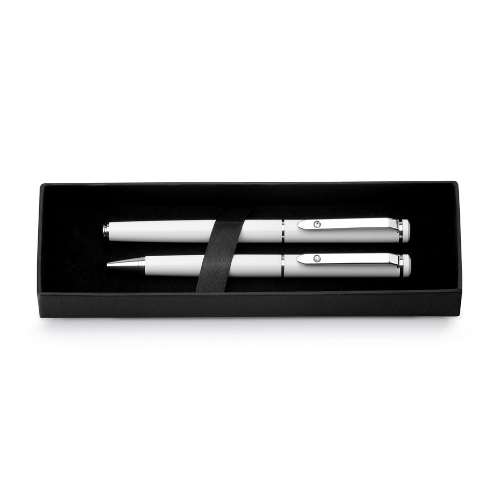 Set de pix si roler din metal furnizate in cutie cadou captusita.