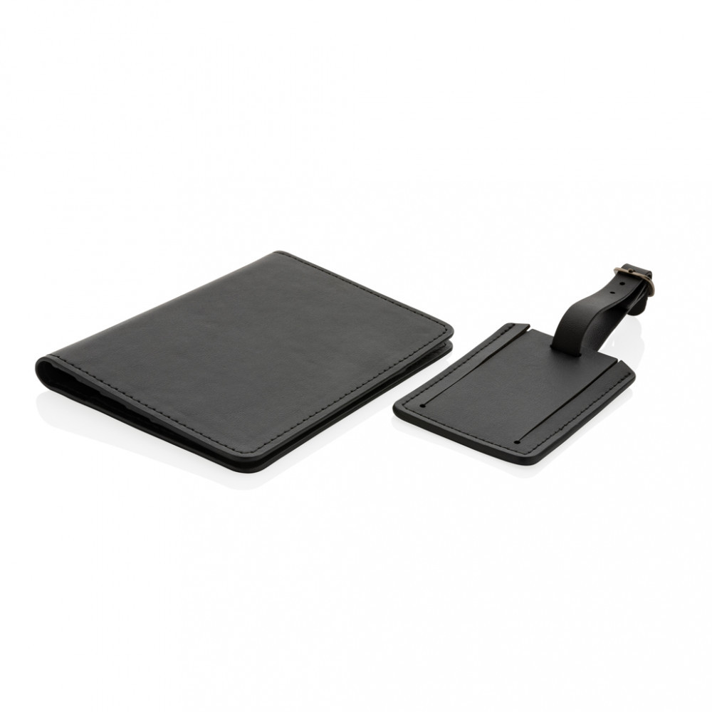 Set portofel pentru pasaport si eticheta bagaj, Swiss Peak, 42FEB230853, 15.3x17.1x2.5 cm, Poliuretan, Negru