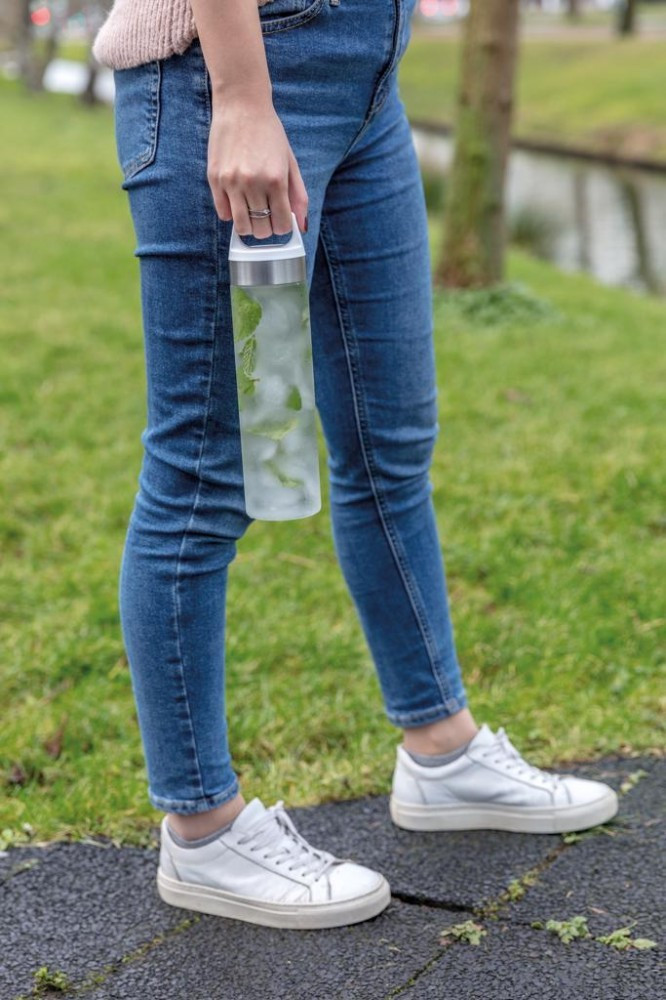 Sticla de apa 650 ml, fara scurgeri, cu maner, Everestus, LF01, tritan, polipropilena, alb