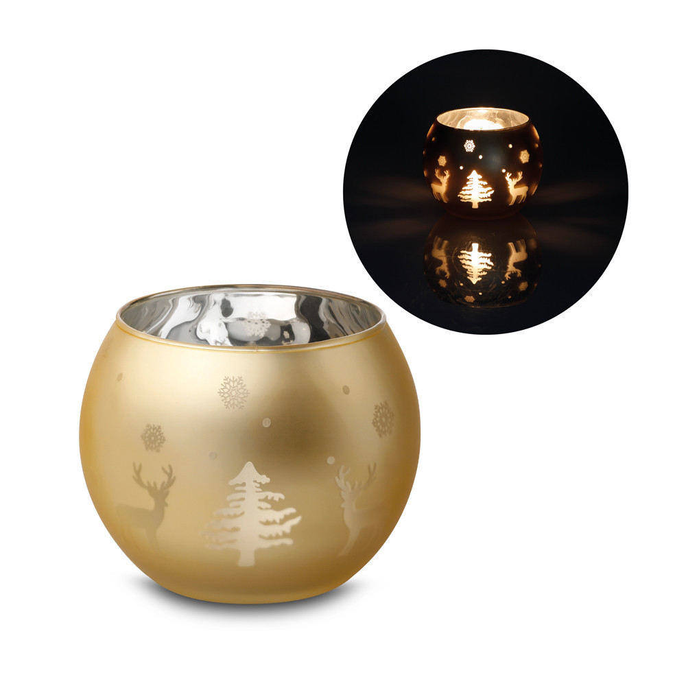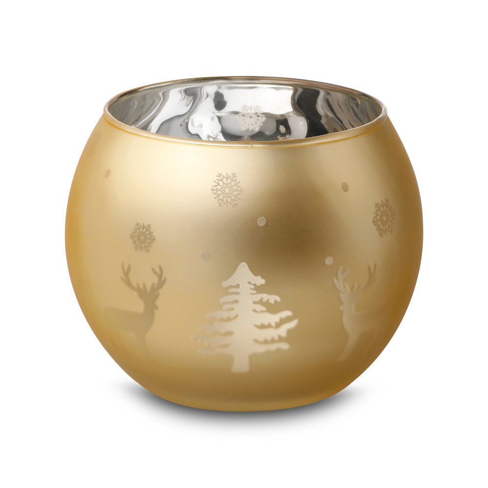 Suport lumanari, cu motive de Craciun, ø105x85 mm, Everestus, 20SEP0904, Sticla, Auriu
