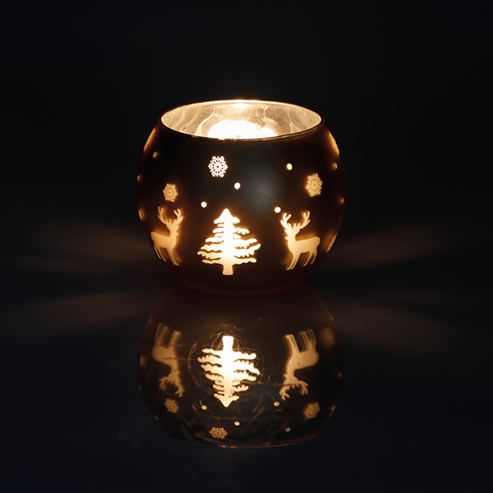 Suport de lumanari din sticla cu decoratiune de Craciun.