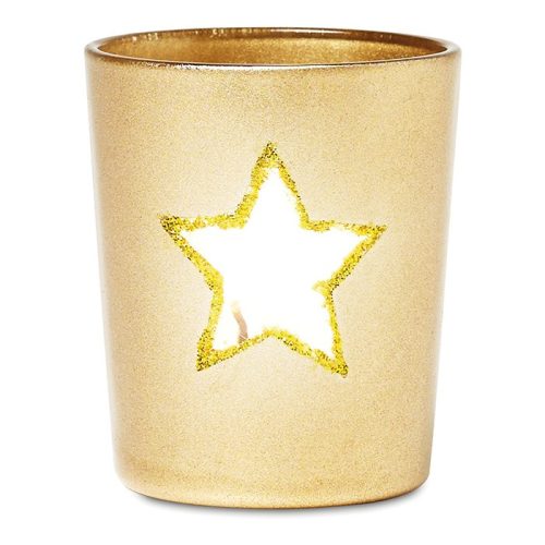Suport din sticla pentru lumanare, cu motive stea cu sclipici.