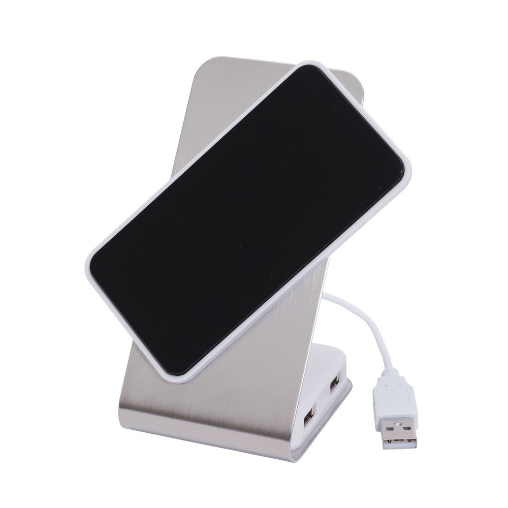 Suport telefon de birou, Everestus, STT056, otel inoxidabil, plastic, argintiu, negru