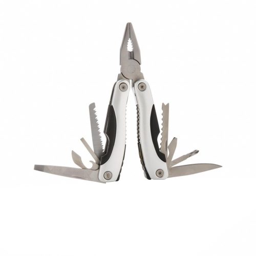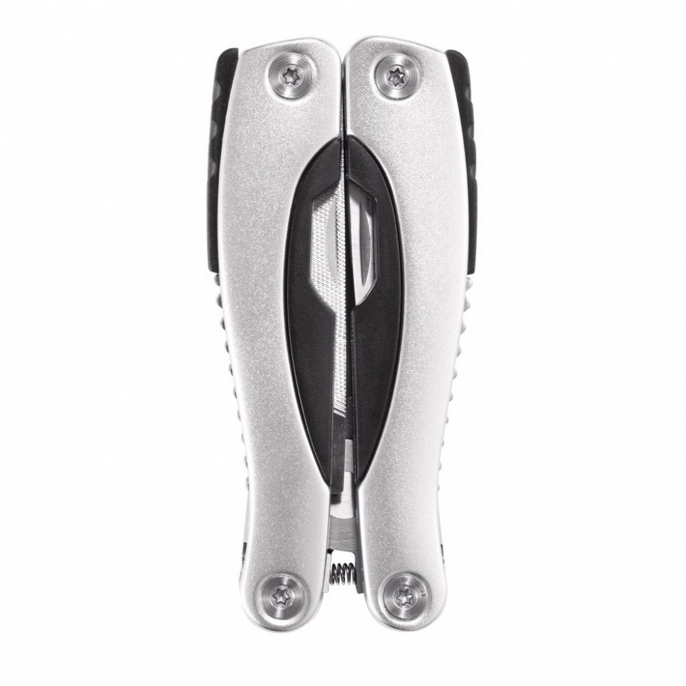 Unealta multifunctionala realizata din aluminiu si otel inoxidabil, cu insertii negre pe maner, 14 functii si husa de protectie din poliester 600D.