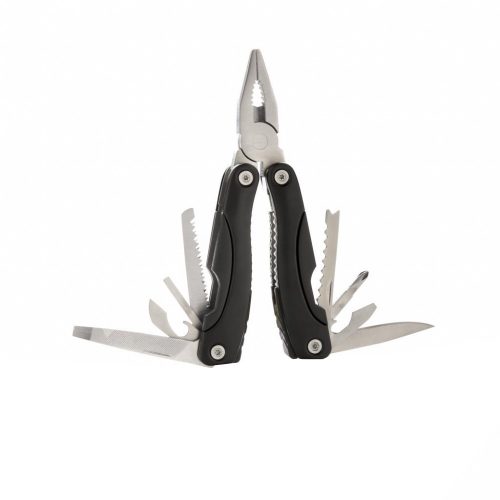 Unealta multifunctionala realizata din aluminiu si otel inoxidabil, cu insertii negre pe maner, 14 functii si husa de protectie din poliester 600D.